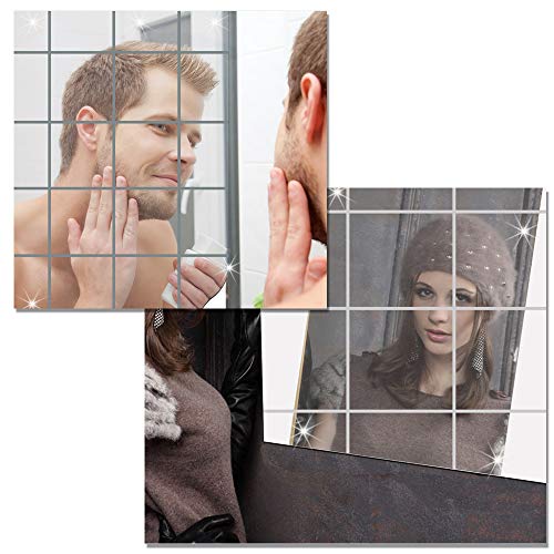 JNCH (15 * 15cm 16pz Adesivo Specchio Quadrato Decorazione per Parete Muro Casa Armadio