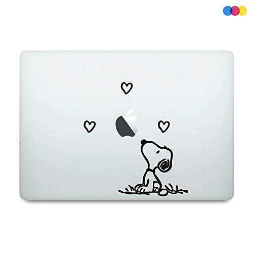 Adesivo Sticker Snoopy con Cuori - Joe Cool - Peanuts - Cane Ideale per PC Portatile Auto - Moto - Scooter - Camion - Muri - Pareti - Comics Decal - in Vinile di Alta QUALITA' - Celeste 16 x 14 cm