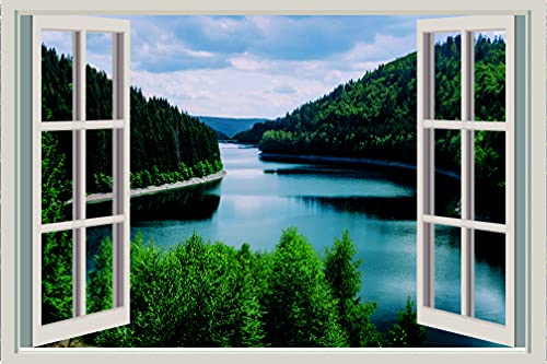 ADESIVO DA MURO - LAGO 3D Window - Adesivo murale Wall Sticker Decalcomania In Vinile Arte Murale Decor (150X100)