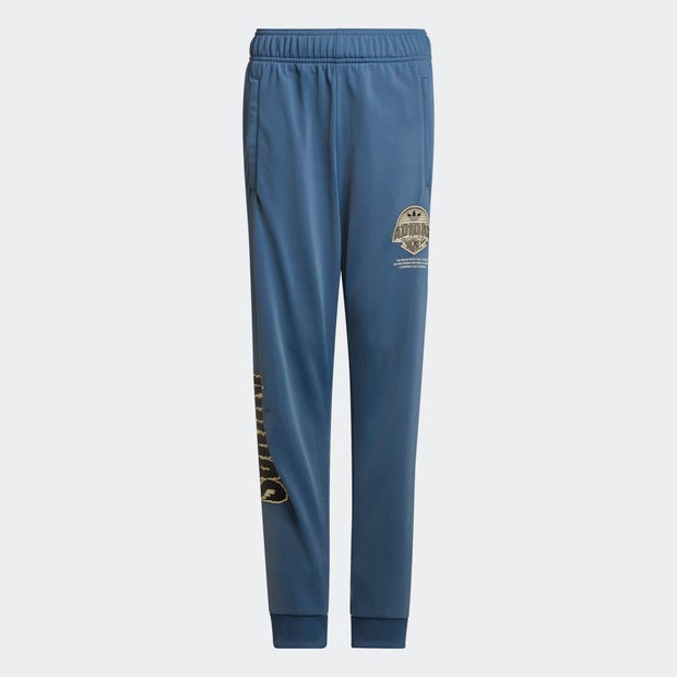 If you've ever wanted track pants that can take on any look, this pair from adidas is made for you. With ribbed cuffs and just the right fit, these juniors pants are laid-back and casual, but with a tailored touch. A modern graphic element puts sport in the spotlight, and soft tricot has a subtle sheen for eye-catching good looks. A pocket on each side comes in handy, and a drawcord elastic waist keeps comfort going all day. Made with 100% recycled materials, this product represents just one of our solutions to help end plastic waste. Regular fit. Drawcord on elastic waist. 100% recycled polyester tricot. Side zip pockets. Ribbed cuffs.