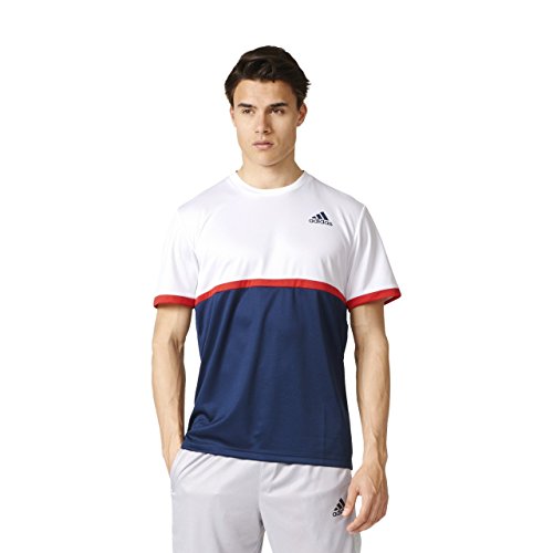 Adidas Court Tee, Maglietta A Manica Corta Uomo, Blu/Bianco/Rosso (Maruni/Bianco/Rojray), L