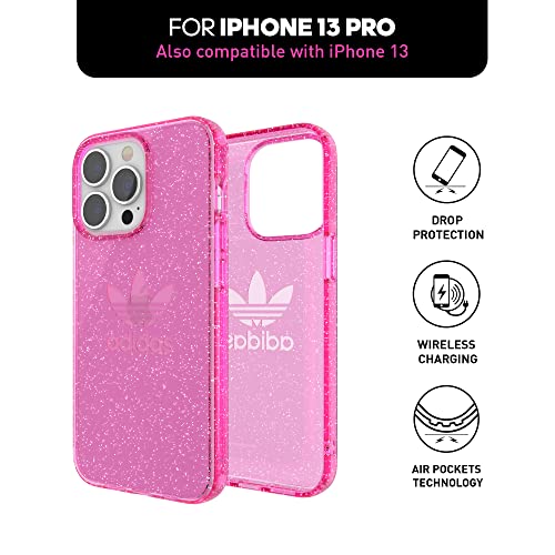 Adidas Custodia progettata per iPhone 13 PRO 6.1, Custodia Testata a Caduta, Bordi rialzati Antiurto, Custodia Originale Protettiva con Glitter Rosa