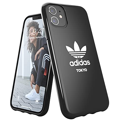 Adidas Custodia progettata per iPhone 11, Custodia Testata Contro Cadute, Bordi rialzati Antiurto Originale Tokyo Snap Case Cover Cover Nera con Logo Bianco