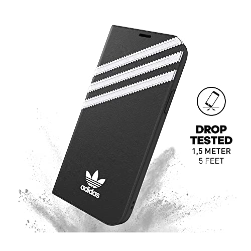 Adidas EX7901 Custodia progettata per iPhone 12 / iPhone 12 Pro 6.1, custodia a libro testata, bordi rialzati antiurto. Custodia originale, colore: Nero/Bianco