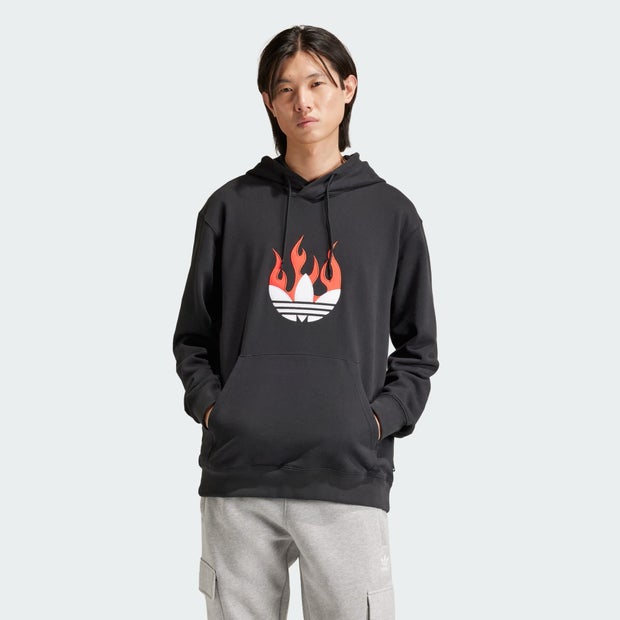 Make a statement in this adidas hoodie. Comfort gets remixed with a fiery twist that gives the Trefoil bold attitude. Perfect for lounging or layering up for a night out, it's made from soft cotton French terry that ensures maximum cosiness as you live life on your own terms. Loose fit. Pullover with hood. 100% cotton French terry. Kangaroo pocket. Ribbed cuffs and hem.