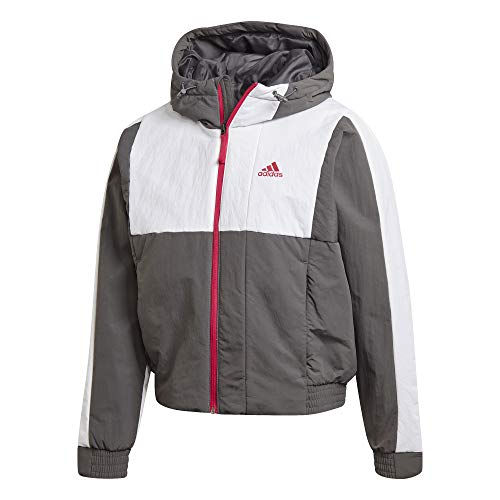 Adidas Giacca da donna con cappuccio, Donna, Giacca, FT2556, Grefiv/White/Bopink, M