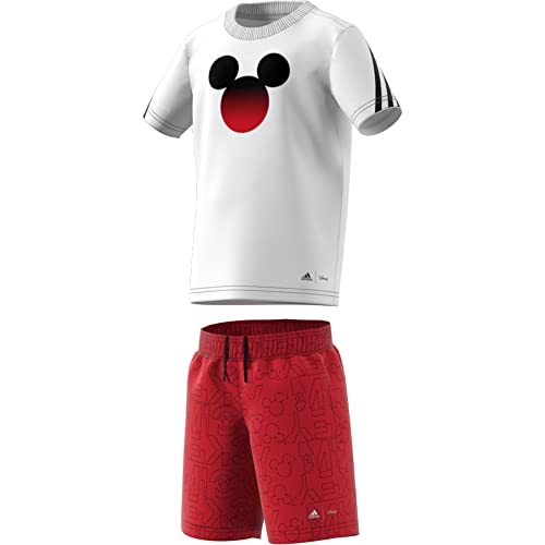 Adidas LK DY MM Sum, Tuta da Ginnastica Unisex-Bambini, Top:White/Vivid Red Bottom:Vivid Red S21/BLACK, 5-6A