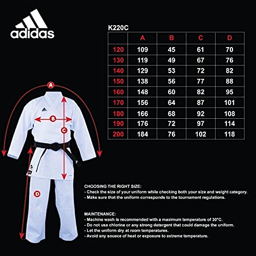 Adidas WKF Club Karate Uniforme Arti Marziali Studente, Uomo, WKF Club - Uniforme da Karate, 8 oz, per Studenti di Arti Marziali, Bianco, 160