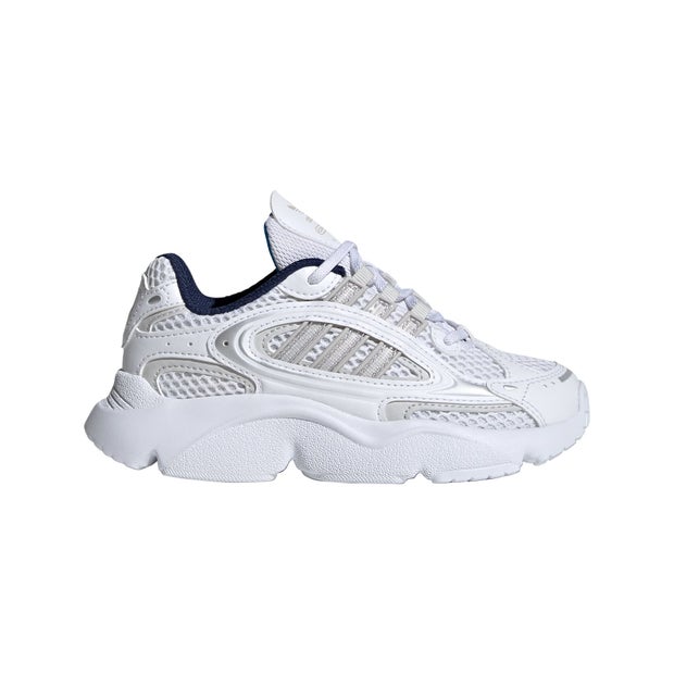 Whether they're exploring new ground or kicking back on the weekends, these adidas shoes for kids keep them comfortable on the go. An update of the iconic '90s OZWEEGO, they have a breathable mesh upper and Adiplus cushioning underfoot for shock absorption and all-day comfort. The versatile and energetic design is distinctive yet embodies the bold spirit of the era that inspired it. With pops of colour and a mix of embossed and debossed details, these sneakers make a statement wherever their adventures lead. Regular fit. Elastic lace closure. Synthetic mesh upper. Adiplus cushioning. Textile lining.