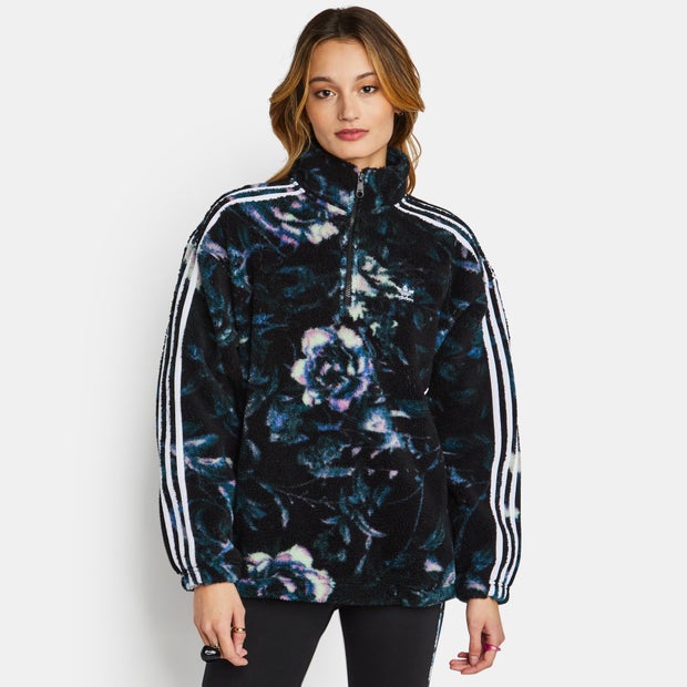 The romantic feel of a floral print gets a moody twist in this adidas jacket. Inspired by the digital world, it takes on the tension of balancing classic style with futuristic edge. The soft fleece build is ideal for chilly air, keeping the cold out with an elastic hem and cuffs. Layer it over a sweatshirt or tee — the half-zip front lets you play around with your look. Made with 100% recycled materials, this product represents just one of our solutions to help end plastic waste. Half zip with stand-up collar. 100% recycled polyester polar fleece. Elastic hem and cuffs.
