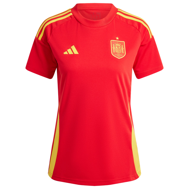 Back your team in the biggest games. Perfect for pulling on during tournament play, this adidas Spain fan jersey is based on the carnation-inspired match shirt. Its soft interlock build is made for comfortable supporting. A heat-applied badge showcases your football passion for all to see. This product is made with 100% recycled materials. By reusing materials that have already been created, we help to reduce waste and our reliance on finite resources and reduce the footprint of the products we make. Regular fit. Ribbed crewneck. 100% recycled polyester interlock. Spain heat-applied crest.