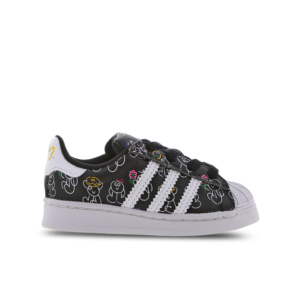 The adidas Superstar shoes are a symbol of expressive style that has spanned generations for 50 years and counting. We wrapped this pair for infants in festive vibes with metallic-gold star accents and a holiday-inspired colour story. We bring the look home with some iconic adidas Superstar elements: signature serrated 3-Stripes, the world-famous rubber shell toe and an instantly recognisable tongue label. Regular fit. Hook-and-loop closure. Synthetic leather upper. Textile lining. OrthoLite® sockliner. Adifit length-measuring insole.