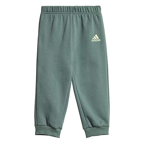 Adidas I Lin Jogg Fl Tuta, Unisex bimbi, Medium Grey Heather/Tech Emerald/Signal Green, 3-6M