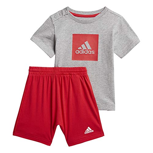 Adidas I Logo Sum Set Tuta, Unisex bimbi, Top:Medium Grey Heather/Vivid Red Bottom:Vivid Red S13/White, 9-12M