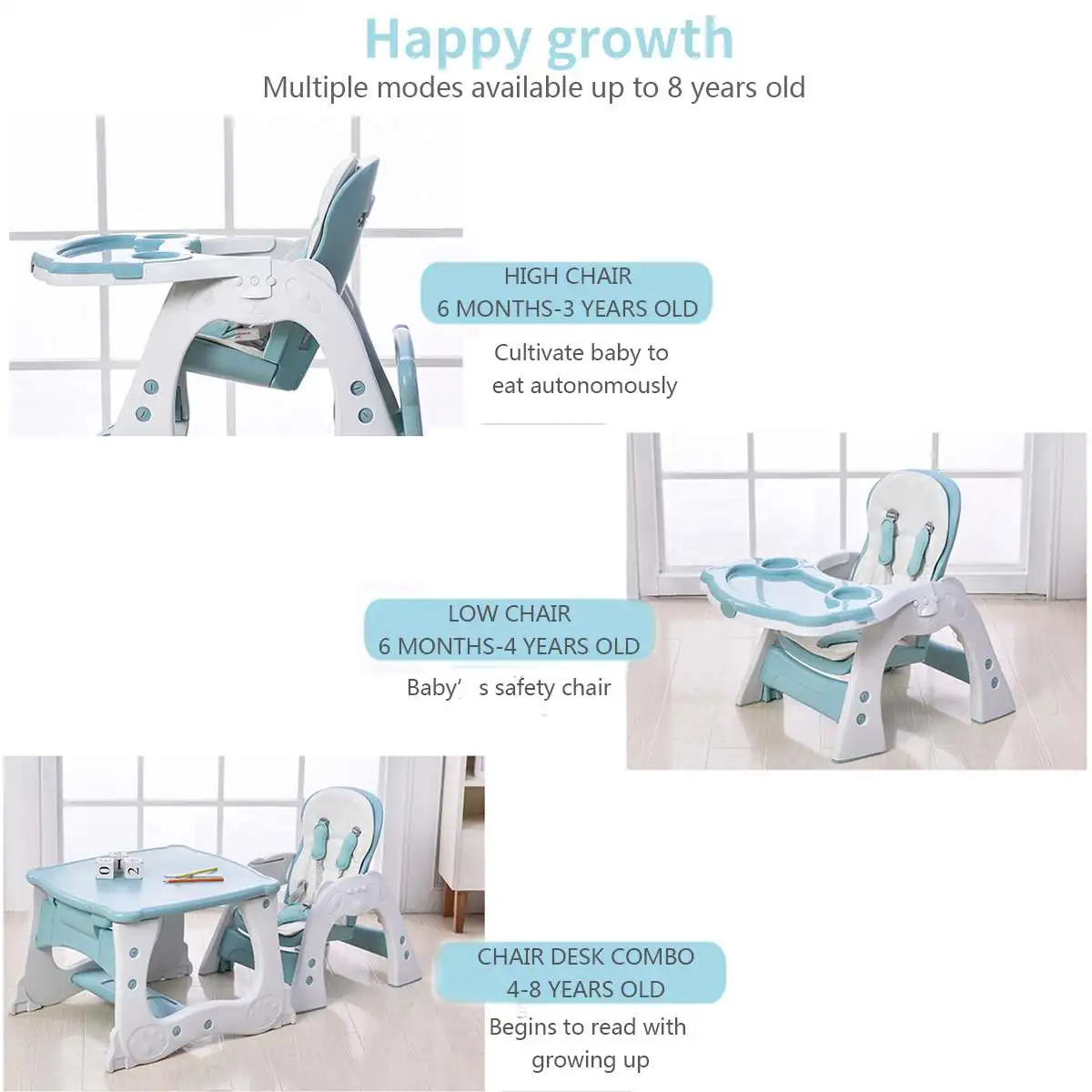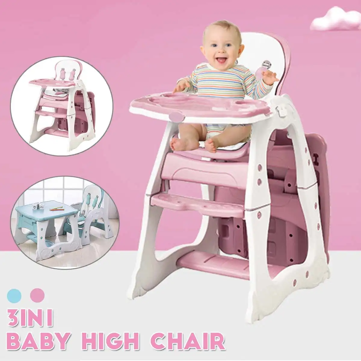 3 in 1 Adjustable Baby High Chair Convertible Play Table Seat Booster Toddler Feeding Tray Children Chair for 6 month to 4 years