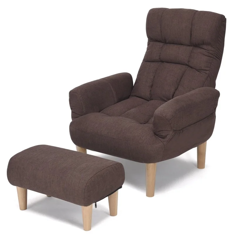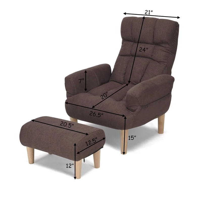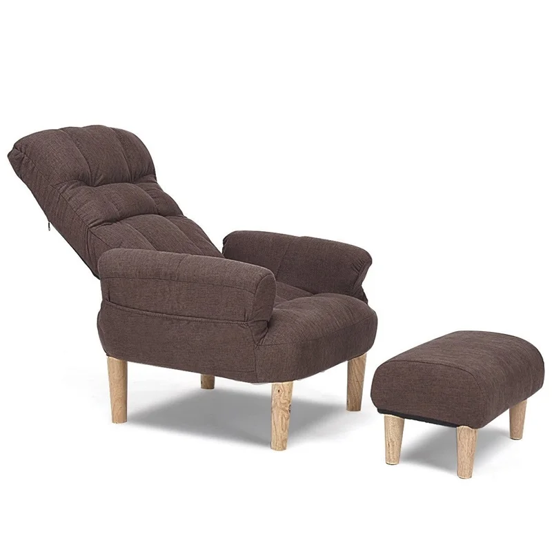 Adjustable Lazy Sofa Chair w/ Footstool and Armrest Sponge Padding and Durable Steel Frame Unique Relax Sofa Chair HW58129