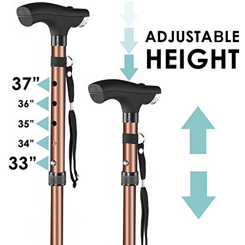 Adjustable Foldable Walking Cane: Walk Confidently! LED Light on Sticks Handle. Elderly Men & Women Canes. Support & Balance Up Down Stairs, Collapsible Folding Pole Monopod Stick. Urban Hiking Poles