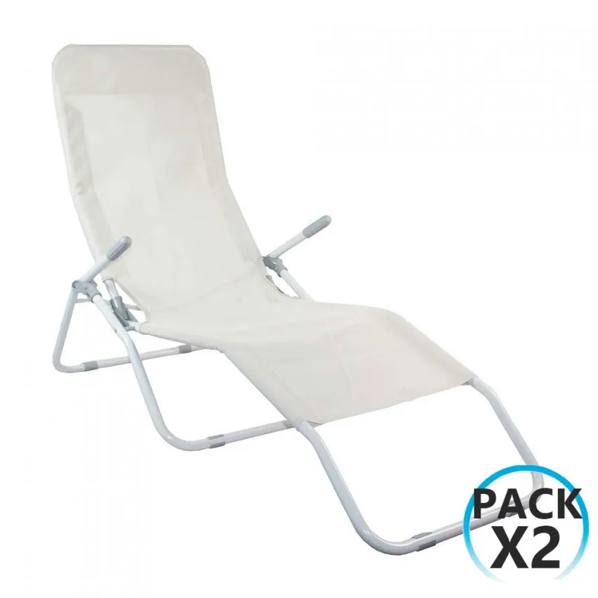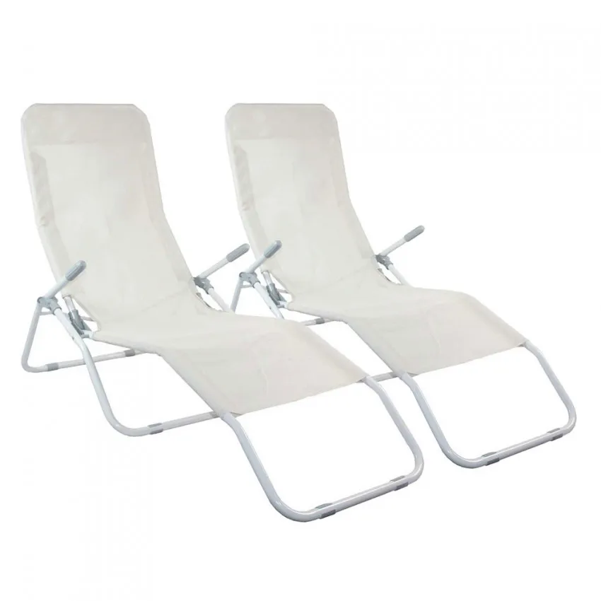 Pack 2 adjustable sun loungers 2 position textile gray GH91