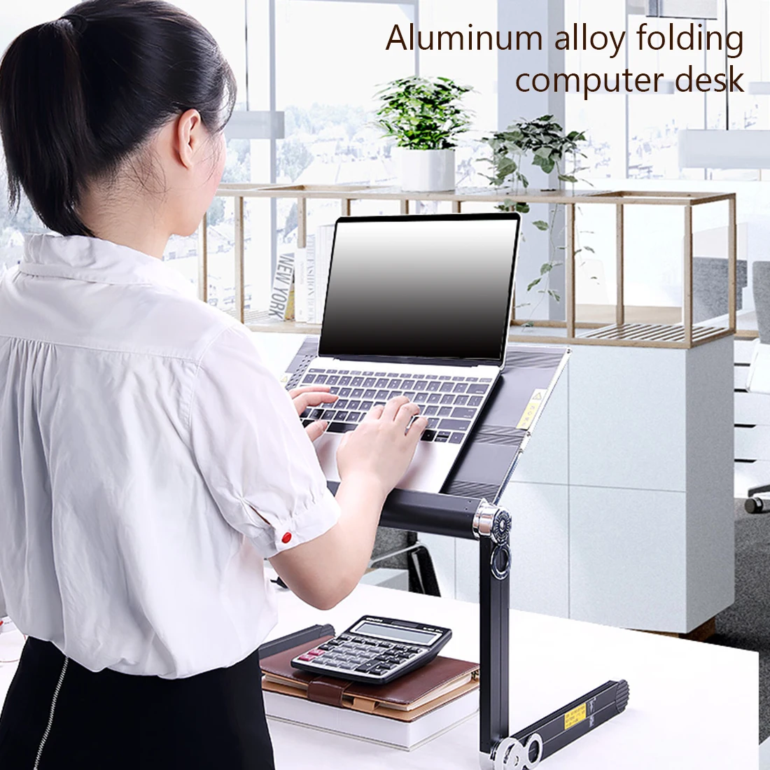 Adjustable Notebook Desk Aluminum Laptop Desk Portable Bed Lapdesk Tray PC Table Stand Notebook Table Desk Stand With Mouse Pad