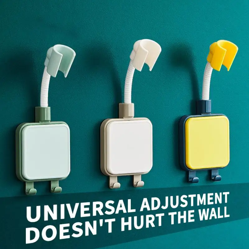 360° Adjustable Shower Head Holder Shower Head Bracket Wall Mount With 2 Hooks Storage Stand Bathroom Accessories