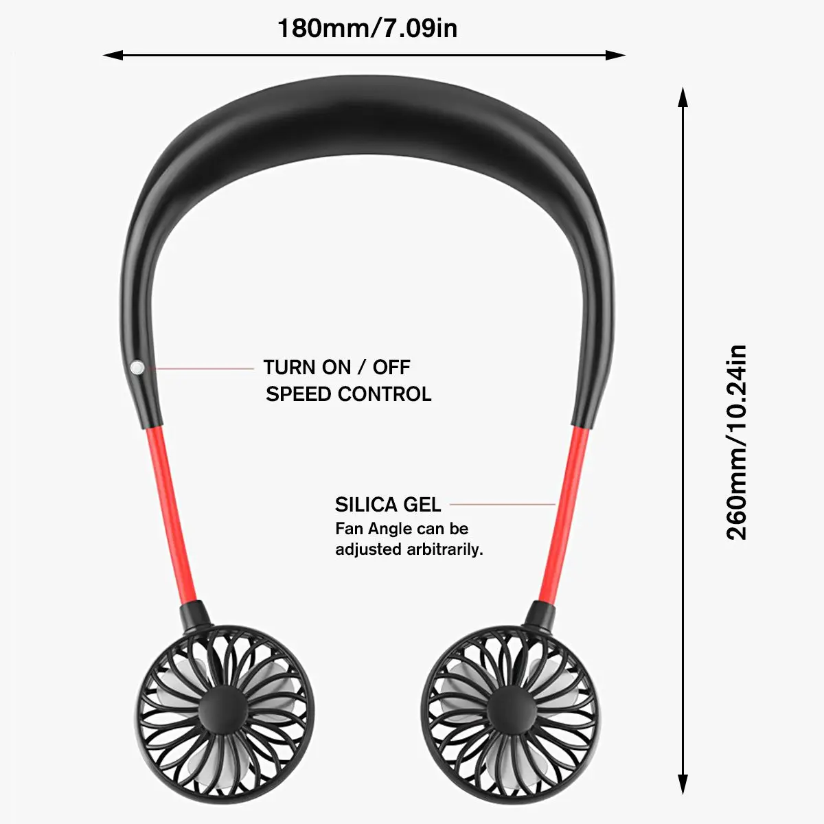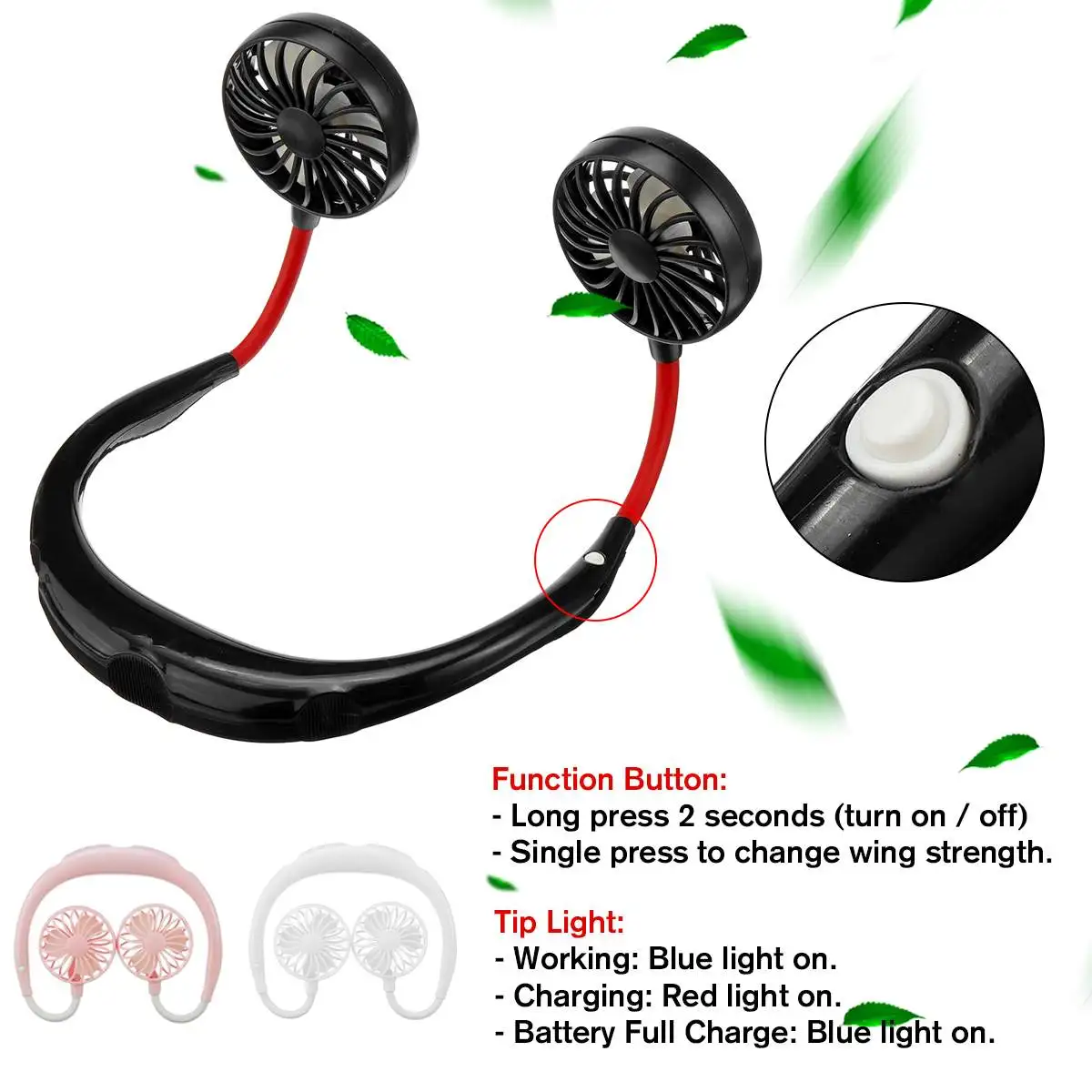 NEW 360° Adjustment USB Portable Fan Hands-free Neck Fan Hanging Rechargeable Mini Sports Fans 3 Gears Wearable Sport Fan