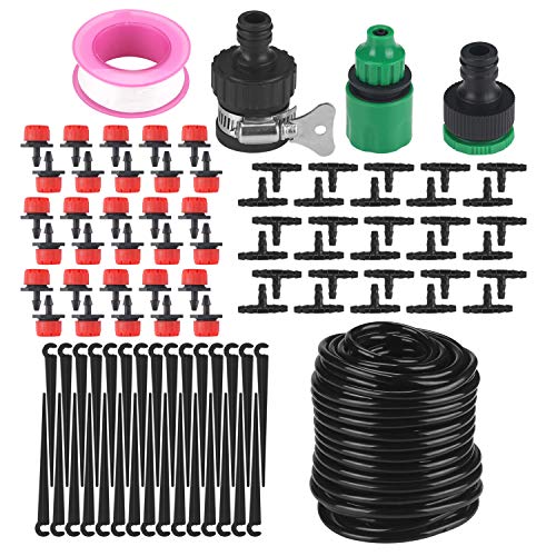 Adkwse - Sistema di irrigazione da giardino, micro drip, kit di irrigazione automatica per irrigazione a goccia, kit di irrigazione da giardino per paesaggi, fiori e terrazze (25 m)