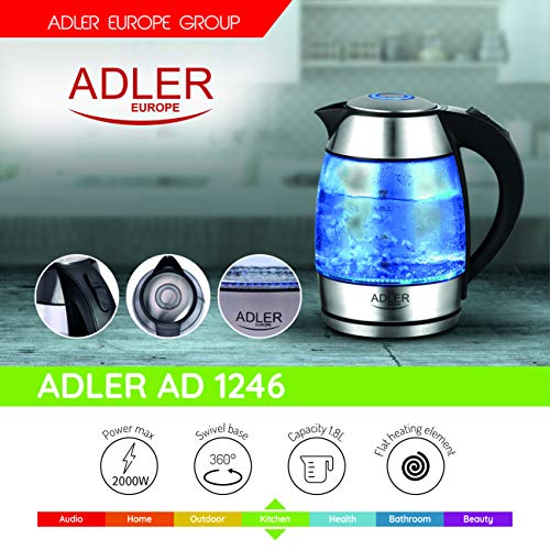 Adler AD 1246 bollitore 1,8 l, nero/argento/trasparente