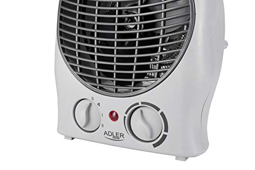 ADLER AD 7716 - Termoventilatore elettrico con 2 livelli di potenza, 1000 W/2000 W, flusso d'aria fredda, termostato, per bagno, camera dei bambini, camper, campeggio, garage, piccolo (bianco)