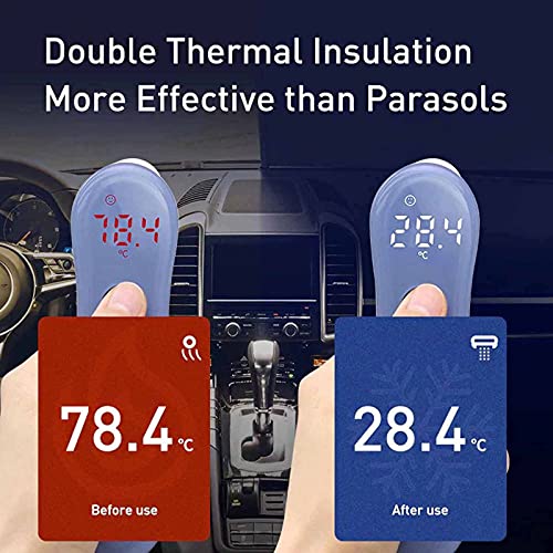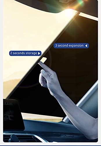 【VERSIONE DI AGGIORNAMENTO】: Parabrezza parasole retrattile Alette parasole extra L'isolamento nero sottostante assorbe la maggior parte del calore, mantenendo freschi il cruscotto, il volante e i sedili. Ventose più grandi e più spesse possono essere montate in modo sicuro sul parabrezza.