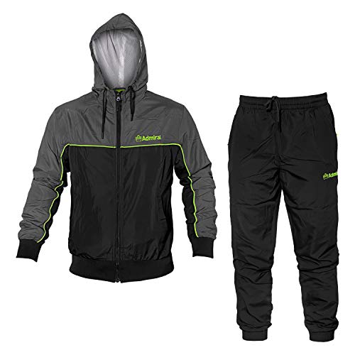 Admiral Tuta Uomo Microfibra Cappuccio Full Zip Art.2182 (Nero/Antracite - M)