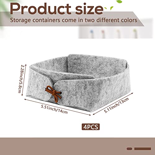 ADNEWX Cestino Portaoggetti in Feltro, 4 Pezzi Scatola di Stoccaggio in Feltro per Telecomando Chiavi Snack Piccoli Oggetti(Grigio, Bianco)