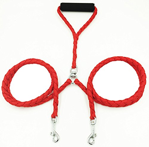 ADOGO guinzaglio Doppio per Cani, Anti-Nodo, per Due Cani (Deepred)