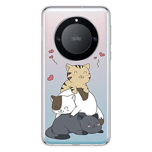 Adolasx Cover Compatibile per Honor Magic 4 Lite Silicone Trasparente con Disegni Ultrasottile Slim Antiurto Case Transparent Kawaii TPU Cover Bumper Custodia Donna Uomo Gatto