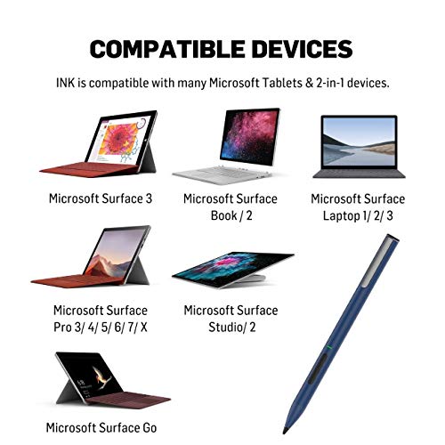 Adonit Ink Sensibile Alla Pressione Rifiuto Delle Palme Ricaricabile Attiva Stilo per Touch Screen per Surface 3 Surface Pro 3 Surface Pro 4 Surface Pro (2017) Surface Book Surface Laptop Surface Studio - Blu Notte