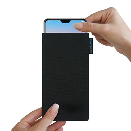 Adore June - Custodia Classica per Huawei P20 PRO, in Tessuto Cordura Resistente, con Effetto Pulizia Display, Colore: Nero, Realizzato in Europa
