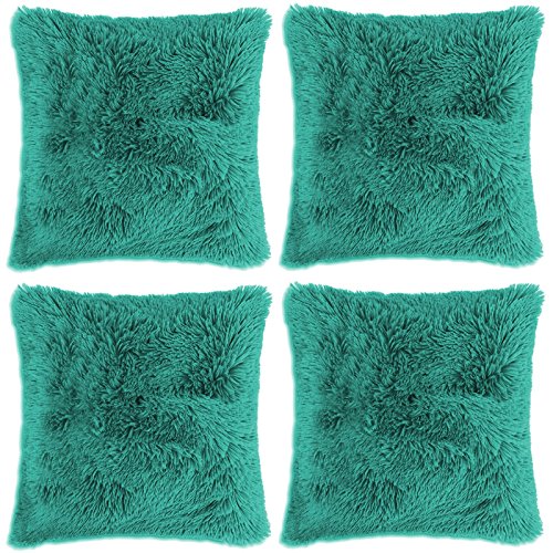 ADORE 4 x Fodere per Cuscini in Pile Grandi Super Morbide e Confortevole Shaggy (43x43cm) - Alzavola
