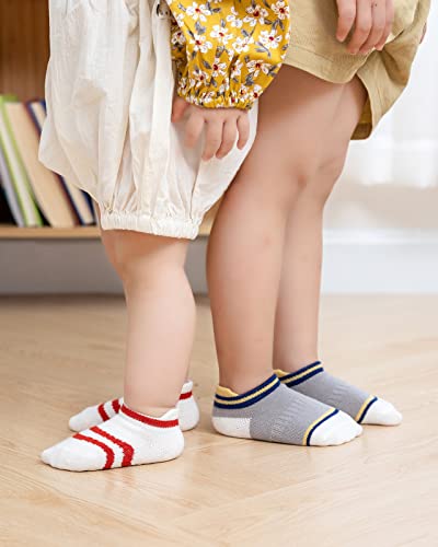 Adorel Calzini Antiscivolo Cotone Corti Bambino 10 Paia Strisce Scure 3-4 Anni (Taglia del Produttore: M)