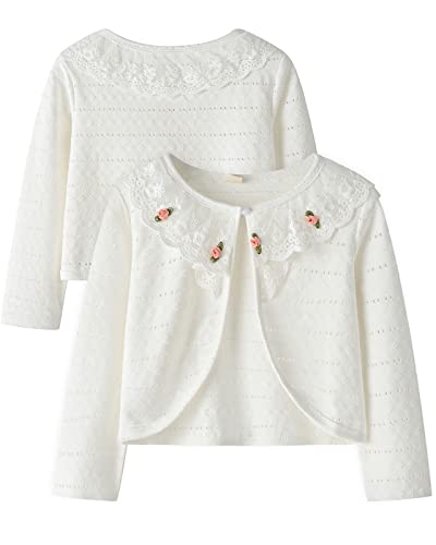 Adorel Cardigan Bolero Coprispalle in Pizzo Cotone Girocollo Maniche Lunghe Bambina Bianco 4 Anni (Dimensioni del Produttore: 110)