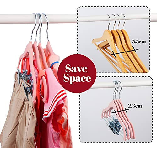Adorfine 16 grucce appendiabiti per bambini, in velluto, con clip, gancio girevole a 360°, antiscivolo, salvaspazio, per vestiti per bambini, vestiti per bambini, gonna e pantaloni, rosa chiaro