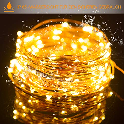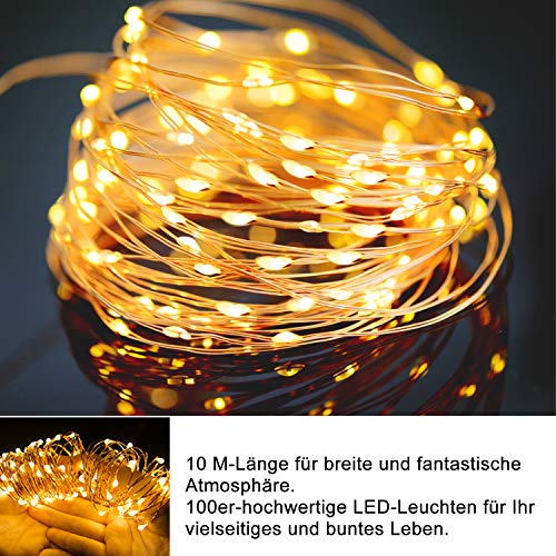 Adoric Catena di luci a LED USB, filo di rame 10 m, 100 pezzi, impermeabile IP65, con porta USB, luce d'atmosfera, per interni ed esterni, Natale, camera, fai da te, decorazioni ecc. Bianco caldo