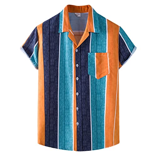 Adpan Camicia da uomo da uomo di lusso da uomo alla moda estiva camicia casual hawaiana spiaggia casual top manica corta con bottone tasca superiore camicia casual uomo estate, Colore E-arancione, XXL