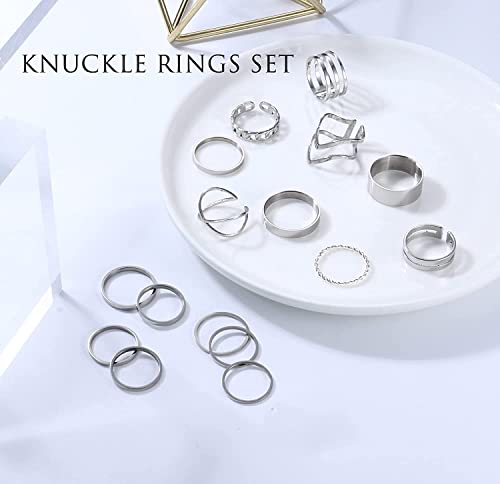 ADRAMATA 15PCS Anelli per Nocche Set Anelli Donna Acciaio Inossidabile Argento/Oro Anelli Anelli impilabili alla Moda Anelli Donna per Tutte Le Dita,S2