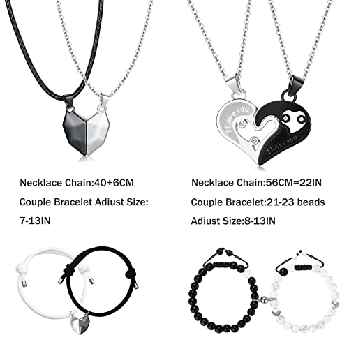 【Pacchetto collane con braccialetti magnetici per coppie】 Riceverai 4 braccialetti magnetici per coppie, 4 collane per coppie magnetiche. Ogni gioiello di coppia magnetica rappresenta il significato dell'amore. Puoi condividerli con la tua ragazza, fidanzato, moglie, marito e amici per mostrare la tua stretta relazione. Design eccellente dell'aspetto e metodo di combinazione economico, vale la pena acquistare.