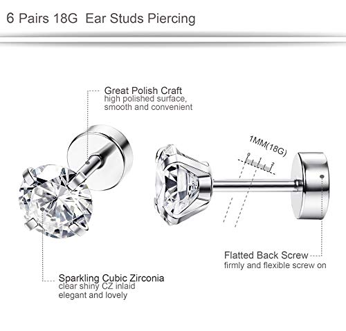Set di orecchini: 1 set = 6 paia di orecchini CZ, 6 diverse misure di zirconi trasparenti, 3 mm, 4 mm, 5 mm, 6 mm, 7 mm, 8 mm, tono argento