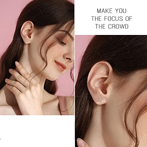 Materiale premium: realizzato con ottone placcato oro bianco di alta qualità, perno in argento sterling 925 e zirconia cubica AAAAA, il set di mini orecchini ipoallergenici è privo di piombo e nichel, ideale per orecchie sensibili. Alta lucidatura artigianale, che crea una finitura brillante di lunga durata e non si appanna facilmente. La vite a farfalla sul retro degli orecchini è liscia, non danneggerà la pelle.