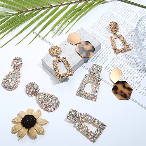 ADRAMATA 4 Paia Orecchini Donna Orecchini Pendenti Rettangolo Grande Orecchini Pendenti a Goccia con Strass Lunghi Orecchini Diamante Geometrici Orecchini Set Rosa Colorato Orecchini Pendenti