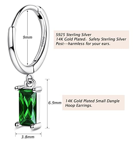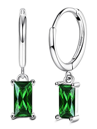 ADRAMATA Orecchini Pendenti a Cerchio in Argento Sterling 925 per Donne Ragazze, Minimalista Orecchini Pendenti in Verde/Bianco con Zirconi Cubici,SG