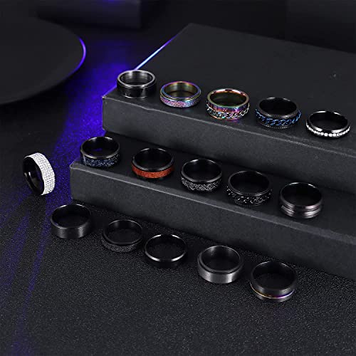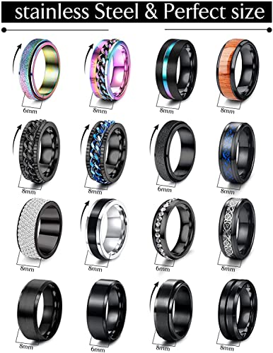 ADRAMATA 16 Pezzi Anelli Antistress in Acciaio Inossidabile per Uomo Donna Nero Anelli Fidget Band Spinner Anelli Set per la Promessa di Nozze 6/8MM di Larghezza 7-12