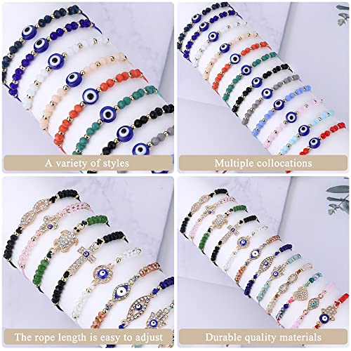 ADRAMATA 24 Pezzi Braccialetti Malocchio per Donna Uomo Braccialetti Chakra Braccialetti Hamsa Regolabili Set Bracciali Donna Nodo Malocchio Bracciale Portafortuna Turchi Gioielli per Donne Ragazze