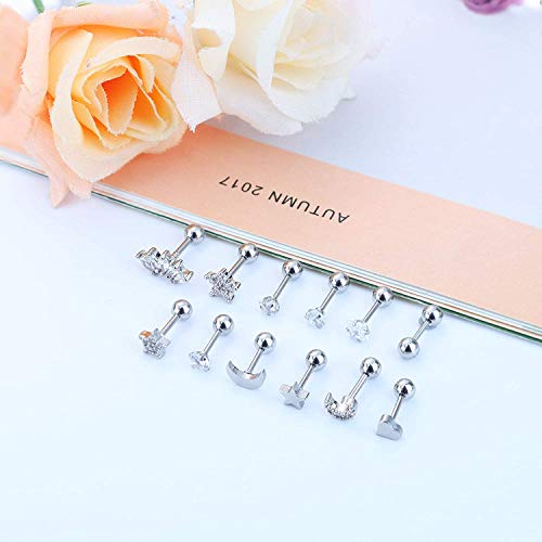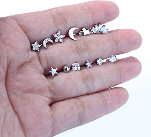 Set di piercing per cartilagine: 12 orecchini per cartilagine, tutti in diversi stili, orecchini a stella, luna, fiore, CZ, stile alla moda e classico, più scelta da indossare tutti i giorni. Il set più economico per te, merita di acquistare.